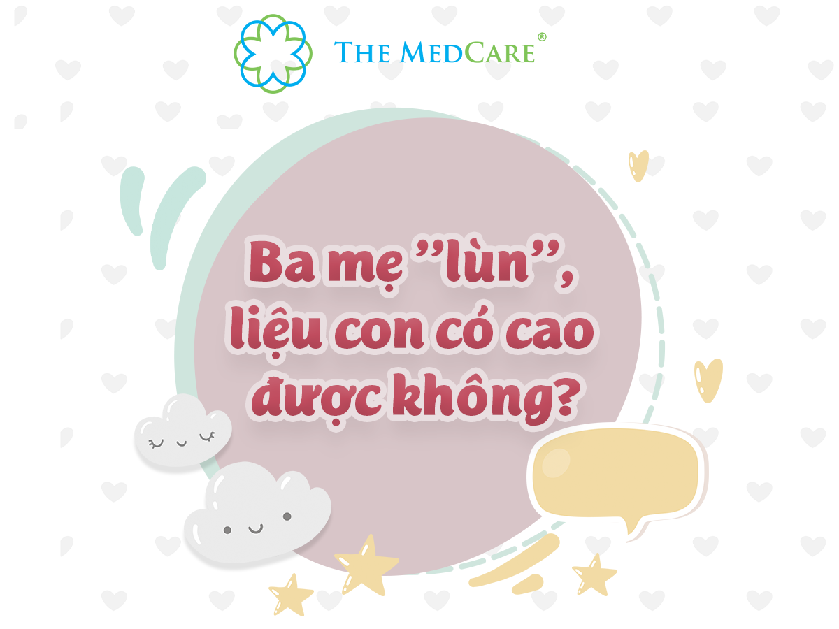 BA MẸ “LÙN”, LIỆU CON CÓ CAO ĐƯỢC KHÔNG? Theo ThS.BS Lê Thị Hải – Nguyên Giám đốc Trung tâm khám, tư vấn Dinh dưỡng – Viện Dinh dưỡng Quốc gia, yếu tố di truyền chỉ ảnh hưởng 23% đến chiều cao của một đứa trẻ. Điều đó cho thấy, nếu chăm sóc khoa học,