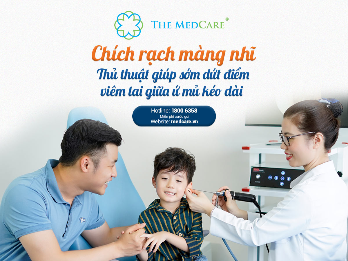 CHÍCH RẠCH MÀNG NHĨ – THỦ THUẬT GIÚP SỚM DỨT ĐIỂM VIÊM TAI GIỮA Ứ MỦ KÉO DÀI Bằng việc chích rạch một lỗ nhỏ trên màng nhĩ, thủ thuật này giúp dẫn lưu mủ ra khỏi tai giữa, làm giảm áp lực trong hõm tai, từ đó giảm các triệu chứng xấu toàn thân,