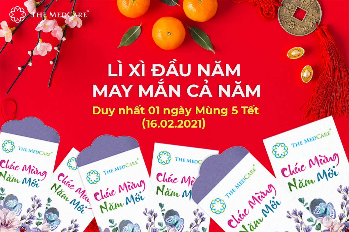 LÌ XÌ ĐẦU NĂM – MAY MẮN CẢ NĂM – DUY NHẤT MÙNG 5 TẾT Thay cho lời chúc sức khỏe và bình an dịp tân niên, vào ngày làm việc đầu tiên của năm mới, The Medcare sẽ dành tặng mỗi khách hàng thương mến 01 bao lì xì may mắn khi tới sử